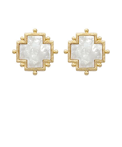 Dotted Cross Acetate Earrings, White/Gold
